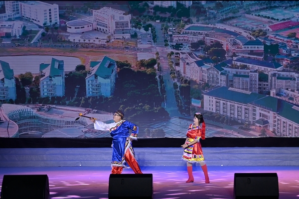 整场演出精彩不断,高潮迭起。歌会在激情澎湃的开场舞《歌舞青春》中拉开帷幕;朗诵《六十五载草木光阴,此处永远有春天》深情回溯了学校六十五载的奋斗岁月与育人初心;退休教师代表与长青学院乐队带来的《美丽神奇的地方》,唱出了对广西、对桂电的无限热爱;2025级新生代表的军旅合唱《打靶归来》英姿飒爽,展现了新一代桂电人的朝气与力量;军训教官代表的军体拳表演《列阵如山》刚劲有力,赢得了阵阵喝彩;退休教师的音配像《逛新城》,用歌声和表演诉说着他们眼里祖国的伟大变迁;国际学院留学生代表的《唱山歌》独具民族风情,体现了桂电开放包容的国际化氛围;来自北京、广东、南宁、桂林等地的校友们也纷纷登场,《同桌的你》《朋友》《琴韵太极》《夜空中最亮的星》《再重逢时》等节目,充分展现了各地校友对母校的深厚情谊与祝福;由70后、80后、90后教师代表联袂献唱的歌曲串烧《时光点唱机》,带领全场观众重温流金岁月;教职工合唱团的一曲《如愿》表达了对学校未来发展的美好祝愿。最后,全体在场师生、校友、演职人员共同唱响校歌《我们从东西南北走过来》,歌声汇聚成欢乐的海洋,表达了全体桂电人将从东西南北再出发,携手共创美好未来的坚定决心。