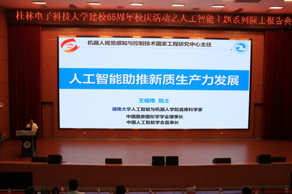 9月13日,中国工程院院士、机器人感知与智能控制领域国际权威专家王耀南应邀来校,以“人工智能技术推动新质生产力发展”为题,为全校师生作报告。相关学院师生代表、科研骨干、青年学者聆听报告。报告会由副校长潘开林主持。