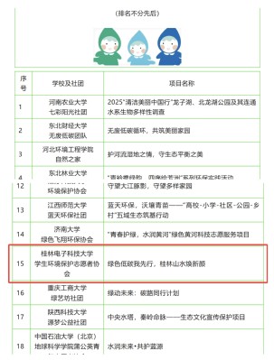 近日,由国家生态环境部主办的2025年“清洁美丽中国行”全国高校小额资助项目入围名单揭晓,我校学生环境保护志愿者协会申报的《绿色低碳我先行,桂林山水焕新颜》项目成功入选。该项目是广西高校唯一入围的项目,也是全国仅有的20个高校学生团队项目之一。