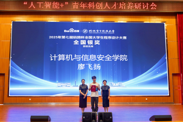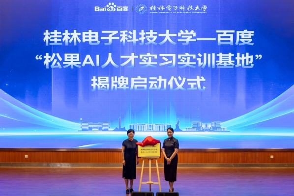 期间,举行了“桂林电子科技大学—百度松果AI人才实习实训基地”揭牌仪式,颁发了“金牌合作单位”证书,表彰了2025年第七届“码蹄杯”全国大学生程序设计大赛获奖同学。