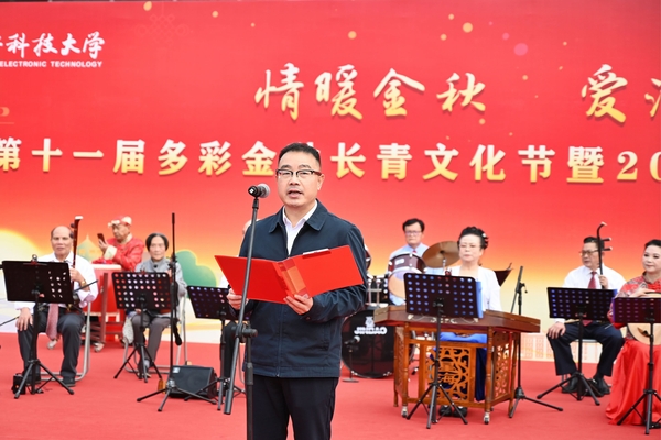 徐华蕊在活动上致辞。他代表学校党委向全校离退休老领导、老同志致以节日祝福和亲切问候,并简要介绍学校一年来在党的建设、民生实事、人才培养、学科建设、科研创新等方面取得的成绩。他表示,这些成绩的取得凝聚着老领导、老同志对学校的深切关怀与无私支持。他指出,今年是“十四五”规划收官之年,也是“十五五”规划谋划之年。各位老领导、老同志们为桂电建设和发展奉献了满腔热忱、付出了艰辛努力,既是桂电历史的亲历者、见证者、参与者,又是桂电事业的奠基者、开拓者、奉献者。站在新的历史起点,他衷心希望大家在身体状态允许的前提下,发挥“五老”优势,持续发光发热,为桂电发展贡献智慧和力量。