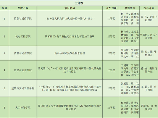 备赛期间,校领导多次听取汇报并给予关心指导。校团委牵头组织,学工部(处)、研工部、创新创业学院等相关部门协同支持,在项目挖掘、申报、打磨、路演、答辩等方面为学生参赛提供全方位保障。大赛历时近一年,自2024年11月启动校赛以来,经过学院选拔和三轮校内评审,从344个主体赛参赛项目中遴选出27项参加广西区赛。经过网评和线下答辩,6个项目入围全国赛,最终1个项目入围全国终审决赛。