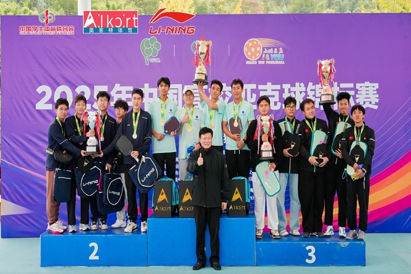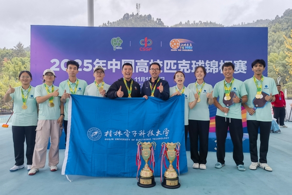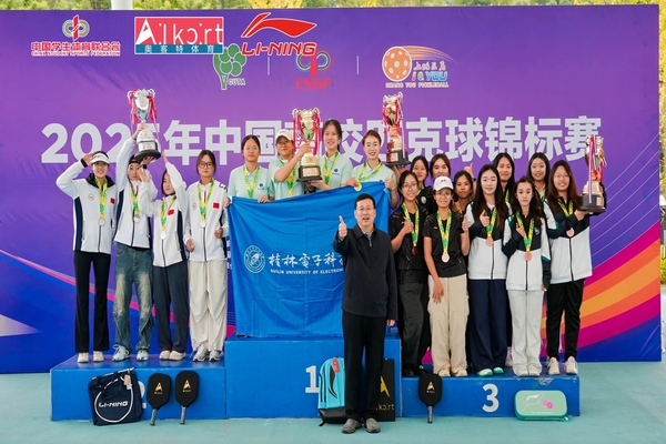 10月31日至11月6日,2025年中国高校匹克球锦标赛在江西省上犹县成功举办。我校派出由黄超滨、莫卓斌、梁宇轩、韦进贵、张丽娜、罗臻娣、温婧文、吴星叶8名学生组成的代表队参赛。比赛中,我校运动员团结协作、奋勇拼搏,最终夺得甲组男子团体冠军和女子团体冠军两项桂冠。在双打项目中我校选手分获男子双打第二名、女子双打第二名和女子双打第五名。