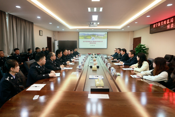 11月4日,南宁海关缉私局政委、全国反走私综合治理调查研究中心主任张兵率队来校交流。副校长李海鸥接待张兵一行,并在花江校区515会议室进行座谈。桂林海关缉私分局、柳州海关缉私分局,我校法学院等相关负责人参加。李海鸥对张兵一行来校表示欢迎,介绍了我校基本情况和当前发展任务,指出在人工智能赋能缉私工作、学生实习实践等方面,双方合作潜力很大。