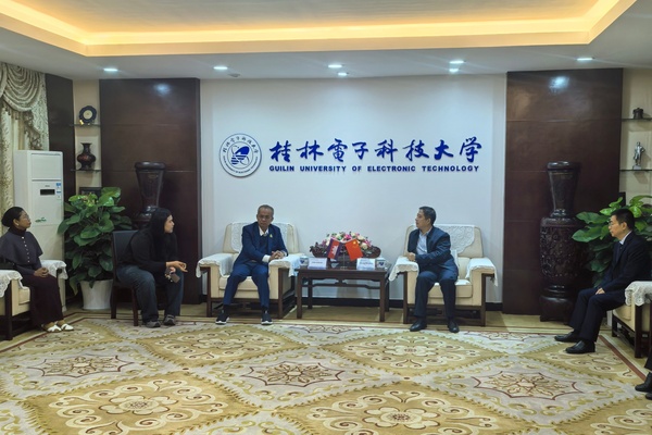 张文涛在花江校区行政楼519会客室会见了柬埔寨教育交流合作访华团,对访华团的到来表示欢迎,向长期以来致力于推动中柬教育交流、支持教育合作发展的柬埔寨同仁表示衷心感谢。他介绍了广西人工智能学院、中国—东盟智能技术学院等相关情况,并欢迎更多柬埔寨学子到桂电学习交流。