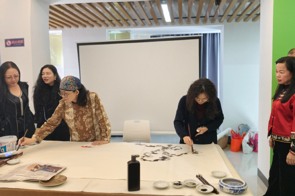 11月14日,由校工会与学生工作部(处)联合主办的桂林市女画家协会进桂电校园书画推广活动在花江校区学生公寓溶苑美育中心举行。桂林市女画家协会艺术家代表与近40余名师生参与。
