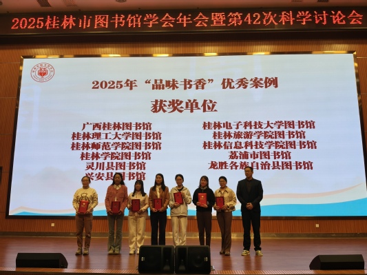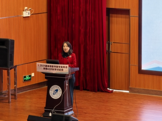 会上,桂林市图书馆学会理事长、广西壮族自治区桂林图书馆馆长钟琼研究馆员作学会2025年度工作总结报告。桂林理工大学张兴旺教授、龙露珍老师,荔浦市图书馆胡海涛馆长及广西紫腾信息科技有限公司陈永腾总经理分别专题报告。期间,图书馆视听室同步举行了桂林图书馆学会2025年度业务技能竞赛。
