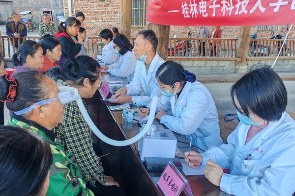 11月26日,校党委副书记聂慧带领校医院组织医务人员,前往河池市罗城县大蒙村开展健康义诊。