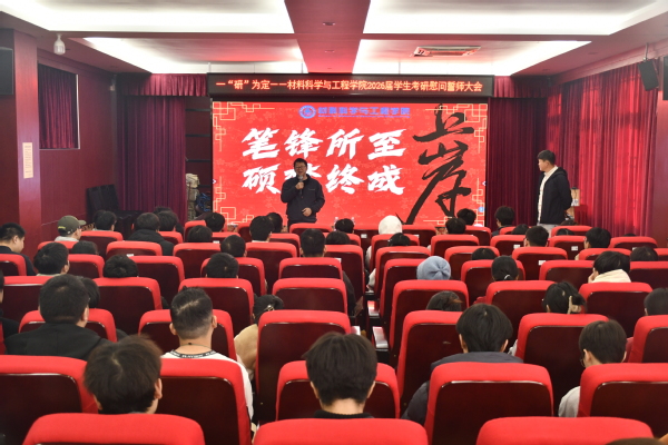 12月11日,材料科学与工程学院在花江校区第一教学楼106室召开2026届学生考研慰问誓师会。学院院长王江、党委副书记丁大海与171名考研学子参会。