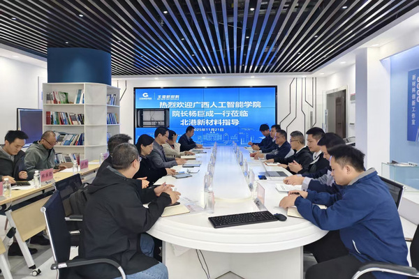 近日,桂电南宁研究院(广西人工智能学院)院长杨巨成带队赴广西北港新材料有限公司(以下简称:北港新材料)调研交流。北港新材料副总经理黄磊及我校科研院、人工智能学院等相关负责人参加座谈会。