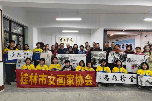 活动中,艺术家们与师生、家长代表共同创作了《鱼跃》等多幅书画作品,并提供了绘画示范与技法指导。桂林市女画家协会向附属学校捐赠了50余幅书画作品。