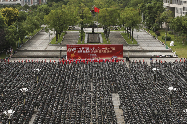 9月7日,我校联合桂林市消防救援支队、灵川县消防救援大队在花江校区正德广场开展2021级本科生消防安全知识培训暨实操演练。副校长陈松青、桂林市消防救援支队副支队长唐锋、桂林市消防救援支队消防宣传科王培、灵川县消防救援大队消防救援人员、灵川县灵田派出所、学工部(处)、保卫处、各学院分管学生工作负责人及2021级本科生5800余人参加演练活动。