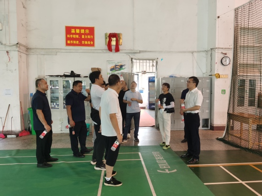 体育部、基建处、后勤处、保卫处、桂电中学等部门相关负责人陪同检查。