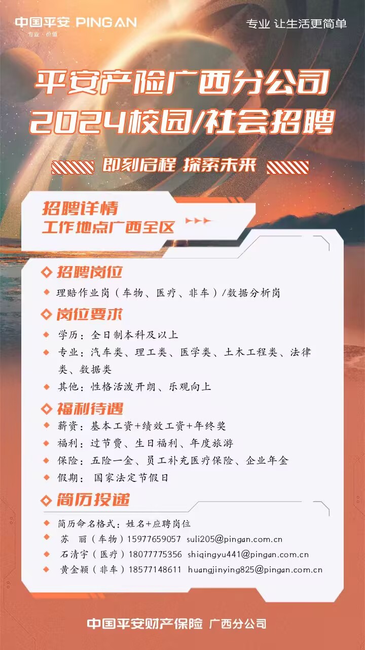 平安产险广西分公司招聘简章