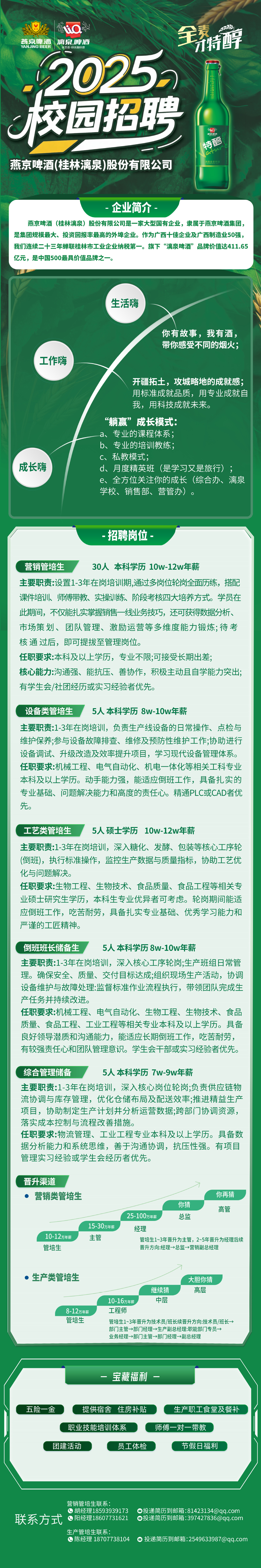 燕京啤酒(桂林漓泉)股份有限公司2025校园招聘简章