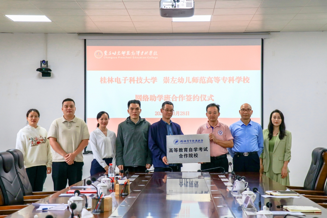 10月28日,学院副院长周建丰一行赴崇左幼儿师范高等专科学校签订自学考试合作办学协议。崇左幼儿师范高等专科学校副校长赵日升出席签约仪式,崇左幼儿师范高等专科学校继续教育学院院长罗华、广西自考网络助学平台副总经理许小敏、学院自考办主任宁毅等参加签约仪式。
