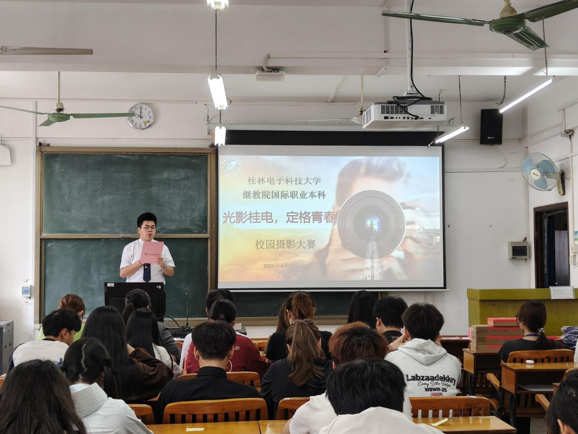 4月17日我院国际职业本科师生在金鸡岭校区8207教室举行“光影桂电,定格青春”校园摄影比赛评选活动,18组精心打磨的摄影作品,从金鸡岭的晨曦,到花江校区的晚霞;从图书馆的灯火,到操场上的跃动…每一帧都是我院学子的独家记忆。