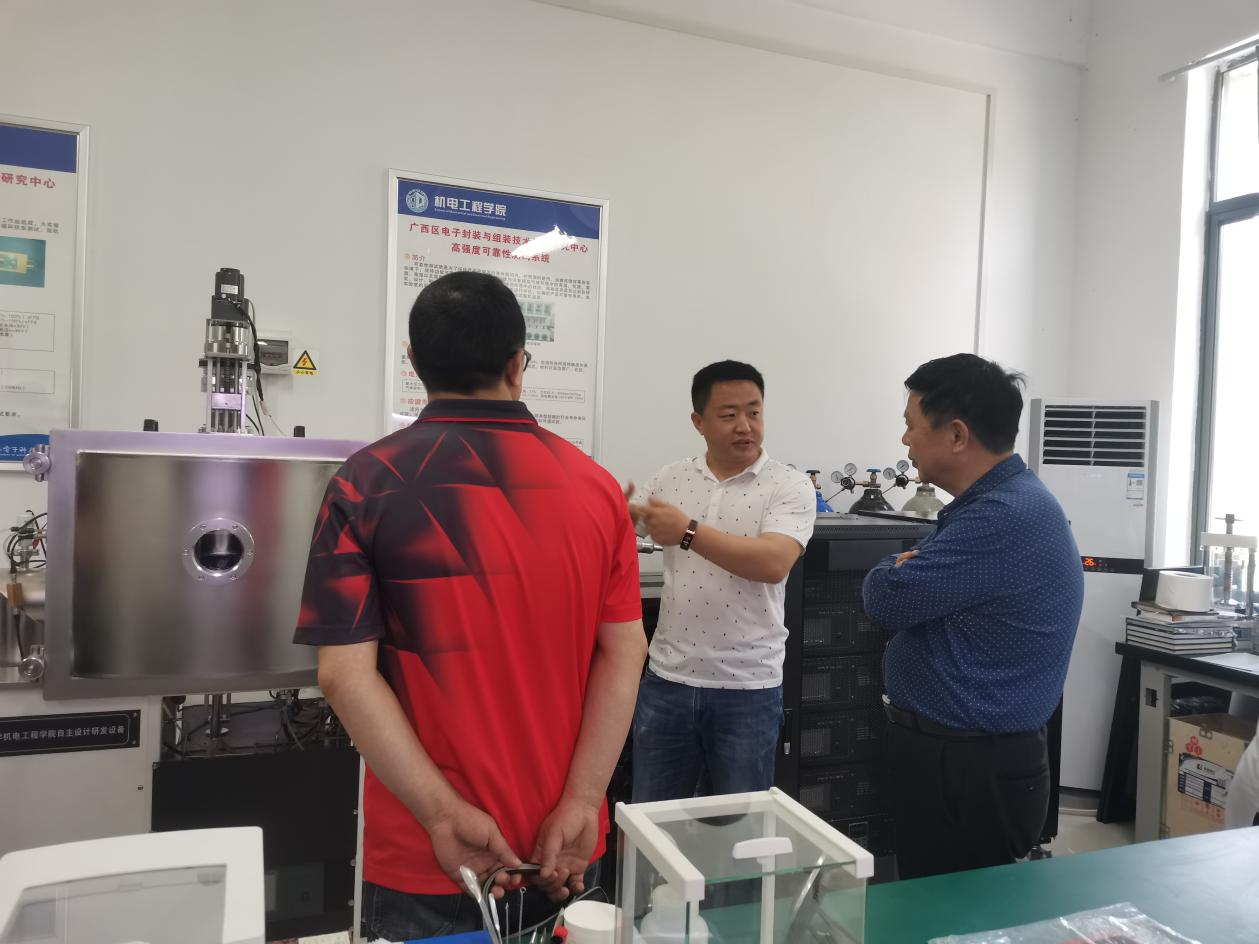 4月14日下午,桂林市七星区政府调研员黄岳飞一行来我院俞兆喆博士实验室参观交流。机电工程学院院长高兴宇、副院长莫秋云、学院教师俞兆喆等人接待了黄岳飞一行,并在机电大楼420会议室进行座谈。