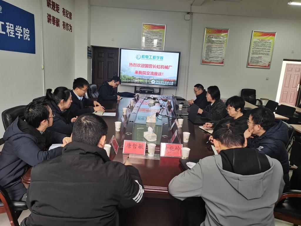 2月21日,国营长虹机械厂电子车间关伟副主任一行到学院调研交流。副院长莫秋云带领相关科研团队热情接待了来访客人。双方在机电大楼420会议室进行座谈。
