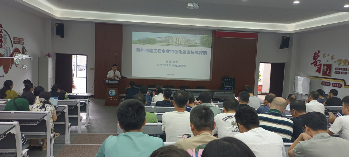 7月3日上午,应机电工程学院邀请广东工业大学机电工程学院刘强院长到校作“智能制造工程专业特色化建设模式探索”的专题讲座。机电工程学院80多名专任教师参加讲座。