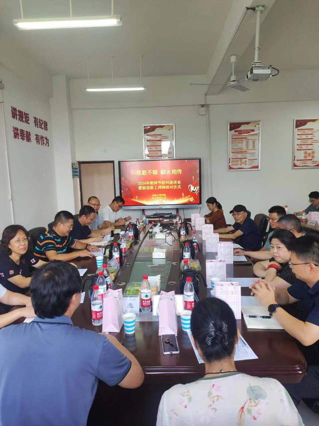 在9月10日第40个教师节之际,学院在机电大楼420会议室举办教师节慰问座谈会暨新进教工拜师结对仪式。学院全体领导班子成员、老教师代表、新进教工等参加活动。