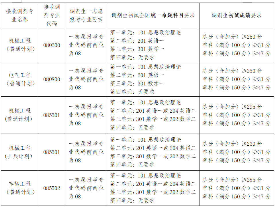 3.考生调入专业应与一志愿报考专业相同或相近,且在同一学科门类范围内,即考生一志愿报考专业和拟调剂的专业,学科门类须相同(专业代码前2位相同)。