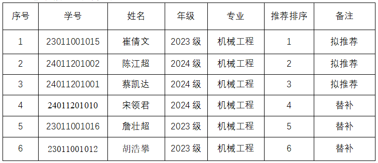 根据学校《关于做好2025年中国科协青年科技人才培育工程博士生专项计划推荐工作的通知》的相关精神和要求,经个人申报、学院初审、学院学术委员会评选,现对评选结果予以公示。拟推荐情况如下: