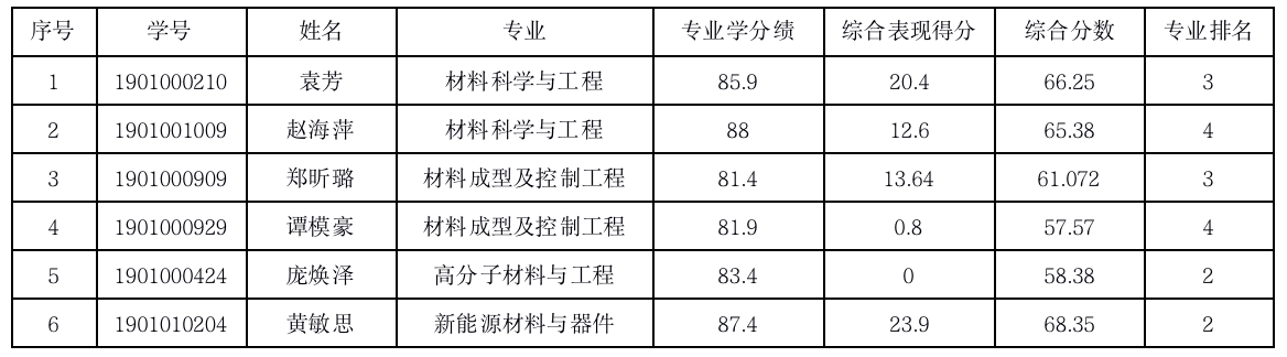 材料科学与工程学院推荐免试攻读研究生入选名单公示