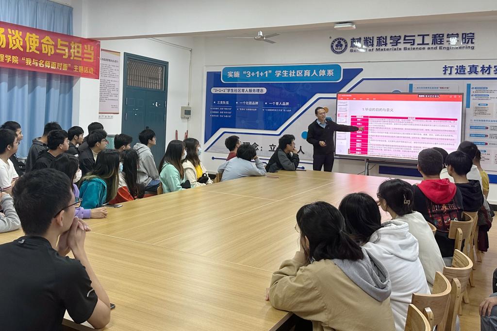 11月6日,材料科学与工程学院在学生社区D区25栋106开展毕业指导进社区活动,学院新能源材料与器件专业副主任熊健、2019级辅导员及2019级新能源材料与器件专业全体学生参加了本次活动。