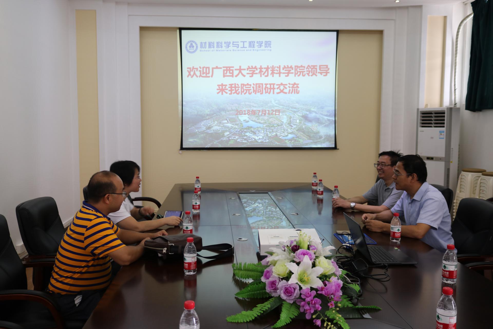 7月12日,广西大学资源环境与材料学院材料科学与工程系主任李安敏老师、系副主任梁天权老师来我院就工程教育认证事宜进行调研交流。学院王仲民书记、材料科学与工程系主任向定汉老师参加座谈。