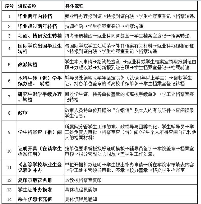 学生档案室办事流程