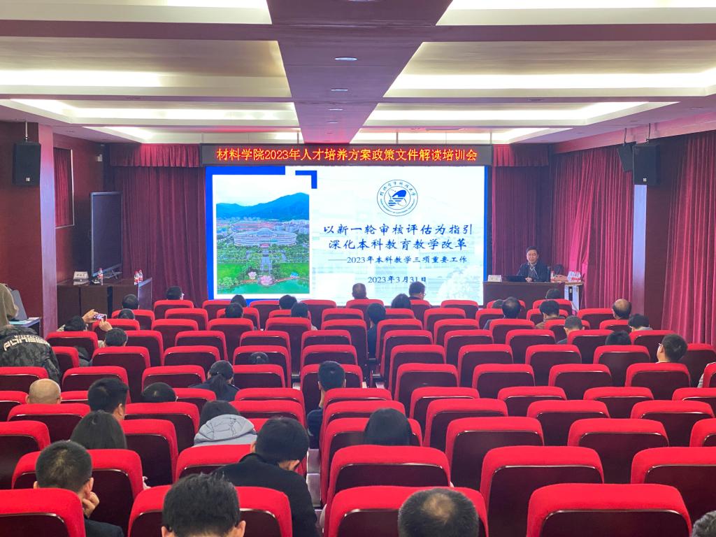 为落实立德树人根本任务,进一步提高人才培养质量,扎实做好2023版本科人才培养方案修订工作,3月31日下午材料学院在1教106会议室举行了全院教工大会,邀请教务处处长常亮教授为我院职工进行学校《2023版人才培养方案》政策文件解读培训。会议由学院副院长钟燕主持。