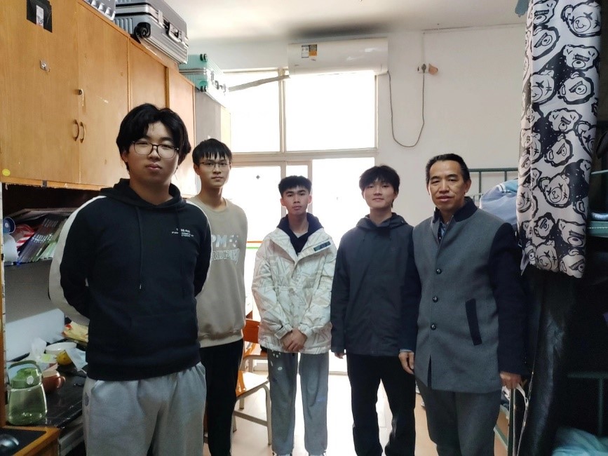 近日,在本科生即将离校之际,梦想导师唐成颖、程日光到11栋宿舍看望联系学生,交流了解同学们最近身体情况、课程学习与考试、回家规划及买票等情况,并提出了同学们在家学习生活建议;同时,建议学生有困难找老师,学校和老师会尽力帮忙解决。