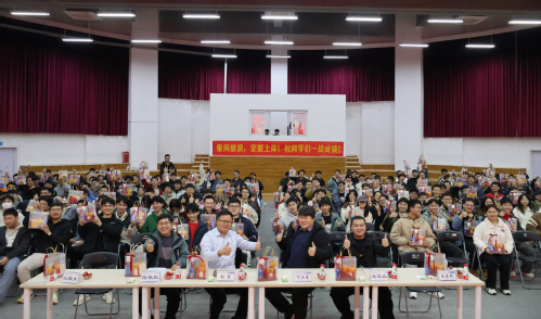 会上,张坚为备战考研的学子们致辞,首先介绍了上一届学生的考研情况及本届学生报考研究生的情况,给同学们树立信心、鼓舞士气,希望学子们在考试中保持平常心,考出好成绩。陈俊良为同学们送上寄语,鼓励大家坚持就是胜利,坚守考研初心,保持身体健康,要劳逸结合,保持紧张度,放好心态,带着全院师生的关爱与嘱托轻装上阵。丁大海在总结讲话中指出 “考研路漫漫,奋斗正当时”,希望考研学子迎难而上,踔厉奋发,以必胜的信念走好考研的最后征途,学院继续为同学们提供各方面保障和服务。随后,学院领导老师为考研学生代表发放“金榜题名”考研伴手礼包。最后,由龙茂森讲授科学复习备考以及缓解考试压力的方法,鼓励大家在备考期间拒绝浮躁、不惧困难,保持内心坚定,全力以赴备考,从容淡定应考。