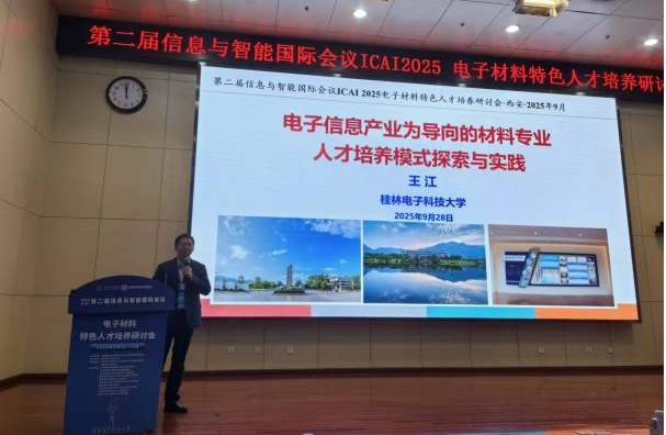 会上,王江院长做了题为“电子信息产业为导向的材料专业人才培养模式探索与实践”的主题报告,详细分享了桂林电子科技大学材料科学与工程学院近年在专业建设和人才培养方面的改革举措和取得的育人成效。