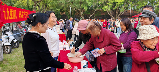 金秋送爽,丹桂飘香,为弘扬中华民族尊老、敬老、爱老的传统美德,10月29日重阳节,材料学院分工会协助离退办在金鸡岭校区体育馆南面篮球场组织重阳节游园活动,学院为退休教师精心准备了游园小礼品,舒福灵书记到游园现场并问候参加活动的退休教师。