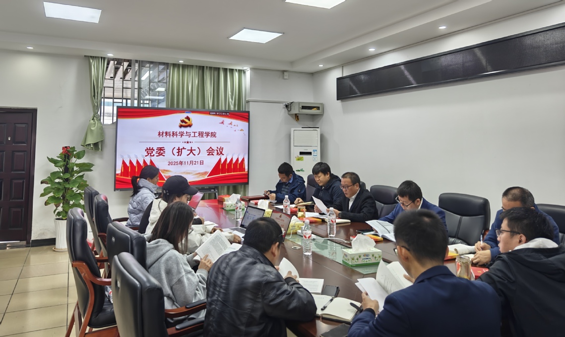 11月21日上午,材料科学与工程学院党委在四教514会议室召开党委(扩大)会议。学院党委委员、全体党支部书记参加会议。会议由学院党委书记舒福灵主持。