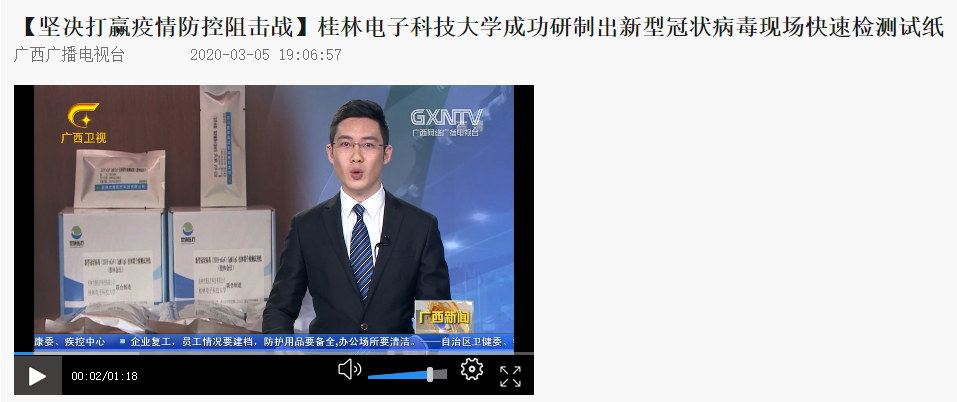 广西卫视《广西新闻》:【坚决打赢疫情防控阻击战】桂林电子科技大学成功研制出新型冠状病毒现场快速检测试纸