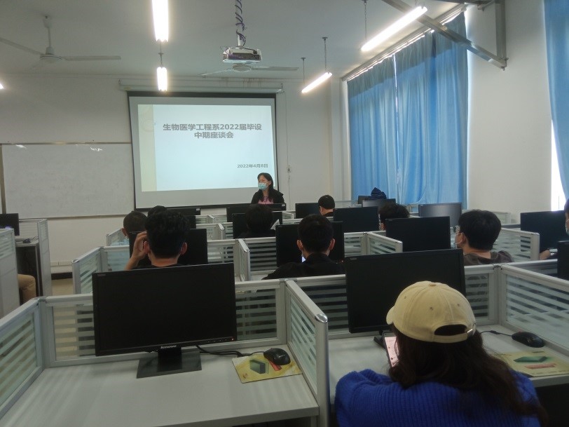 4月8日,我院生物医学工程专业在11B401教室组织召开了2022届毕设中期座谈会,座谈会由生物医学工程系副主任梁桂英主持。梁老师首先根据毕业设计中期检查情况向指导老师和毕业生做了介绍。据统计,大部分同学按照进度计划完成了毕设相关任务,只有少部分滞后,希望相关指导老师对这部分学生进行督促和帮助,保证顺利完成毕业设计任务。随后,梁老师带领同学们再次学习了《桂林电子科技大学本科毕业设计(论文)管理办法(修订)》(2019年12月25日)等学校对毕业设计的规范文件,并分别从“毕业设计进度安排”、 “毕业设计相关文档撰写要求与基本规范”和“完成毕业论文过程中需要注意的问题”等方面做了细致而全面的介绍。 最后,针对同学们提出的一些问题和疑问,经过和指导老师沟通后,进行了详细解答。