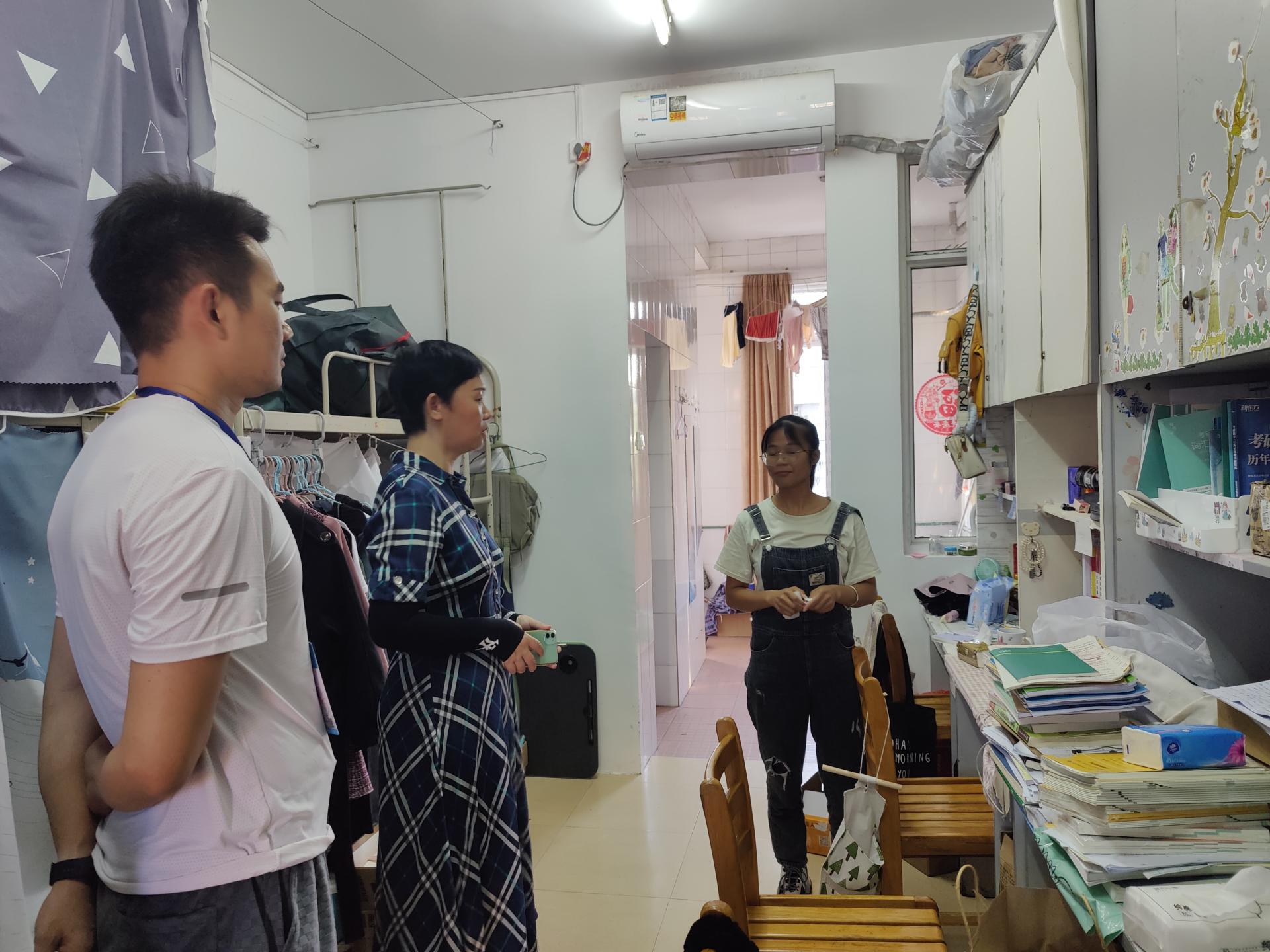 走访过程中,对留校期间的各类安全事项作了温馨提醒,并嘱咐同学们提高自我防范意识,做好防暑降温;时刻保持手机畅通,经常与家人联系;注意劳逸结合,遵守校园管理规定,度过一个平安充实的假期。