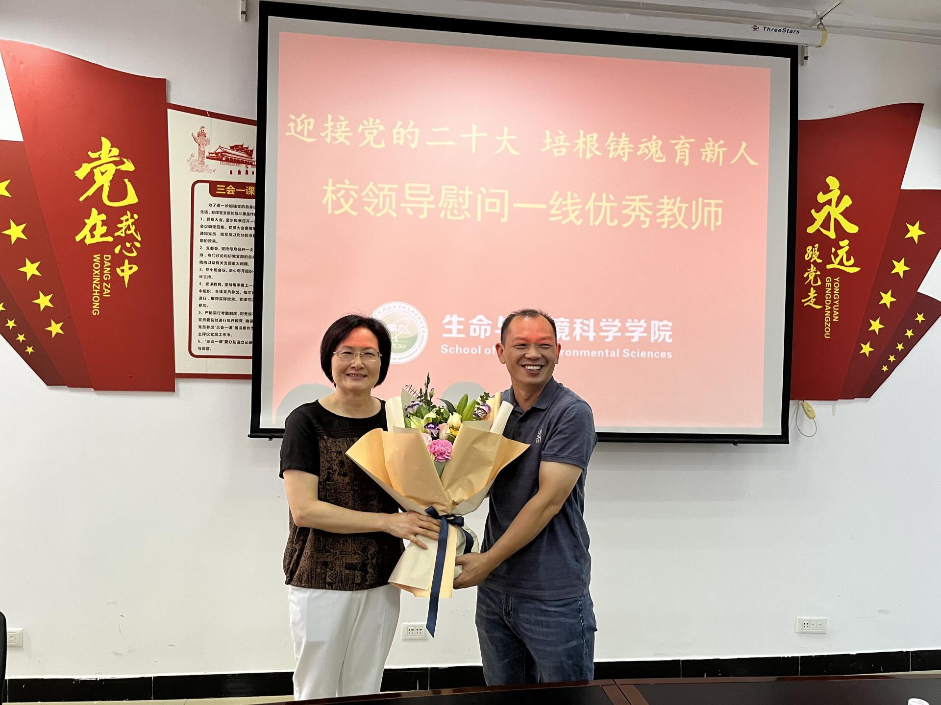 9月7日上午,为庆祝第38个教师节,校党委副书记陈贵英到学院看望慰问一线教师,向优秀教师代表送上鲜花和节日祝福。