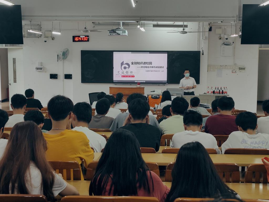 9月24日下午,学院在花江校区11教B208开展“防范电信诈骗”专题讲座,讲座面向学院2021级全体学生,由交通银行桂林分行业务人员主讲。