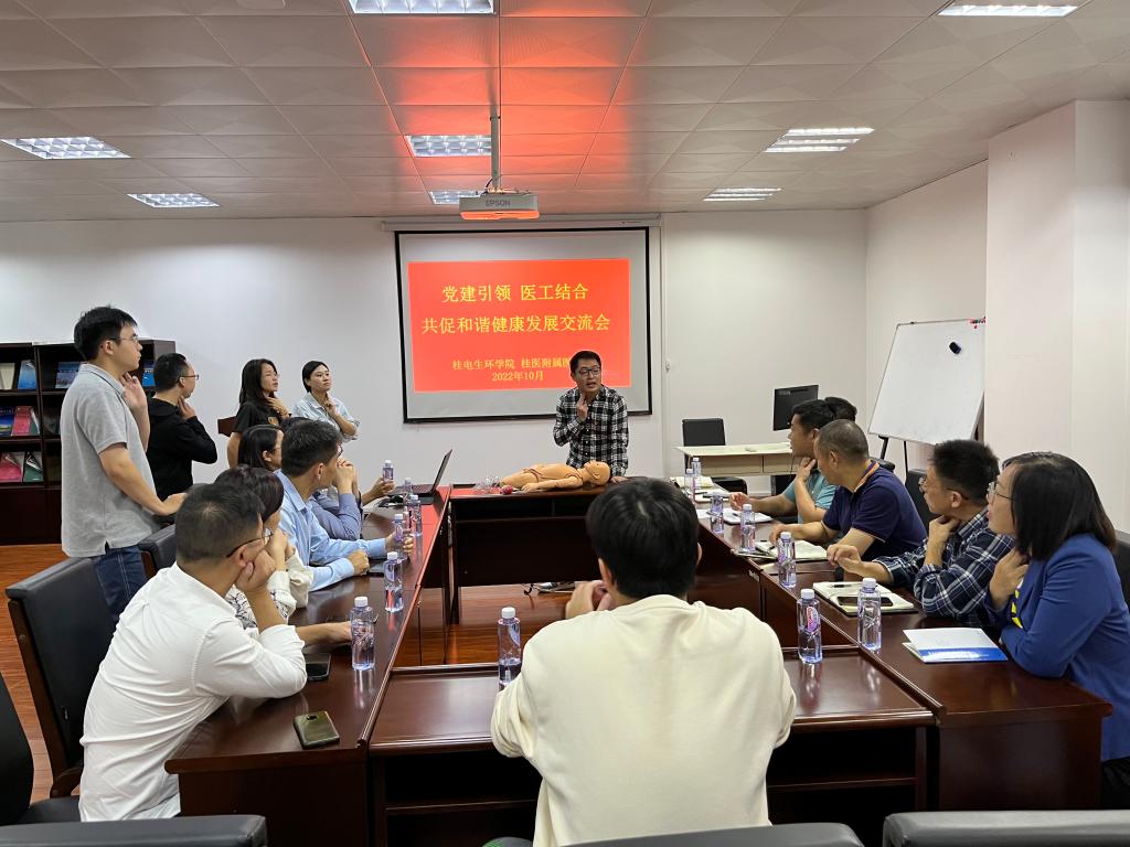 会上,学院党委书记李炳论详细介绍党建与业务深度融合,推进学院高质量发展取得的成效和经验;学院院长陈洪波就生物医学工程专业人才培养模式以及学科建设和科学研究等作了详细介绍。桂林医学院附属医院麻醉科党支部书记、主任王永旺对学院取得的成绩表示赞赏,并详细介绍了来访党支部的建设情况和科室发展现状。随访医护人员还现场讲解了健康知识,演示了多种急救方法。随后,双方就党建工作、医校合作进行了深入交流,并一致表示,要始终坚持党的全面领导,深入贯彻落实习近平总书记关于教育、卫生健康的重要论述,加强学术研究与医学实践的结合,勇于创新、勤于实践、敢于突破,为健康中国建设贡献力量!