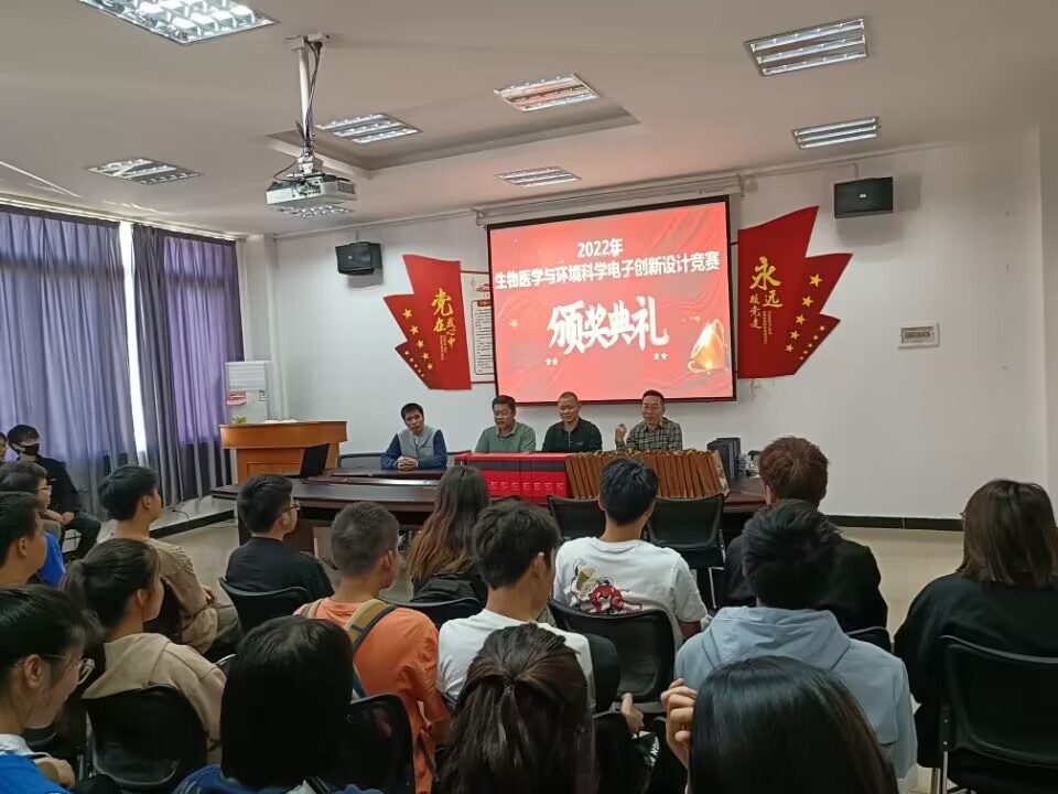 2022年11月1日下午,我院主办的“生物医学与环境科学电子创新设计竞赛”颁奖仪式在学院会议室举行。我院党委书记李炳论、院长陈洪波、副院长李华、环境工程系系副主任许金出席颁奖仪式。