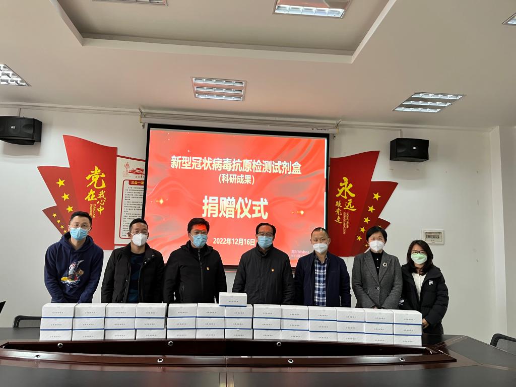 12月16日,学院教师陈真诚教授向学院捐赠一批自行研发的新型冠状病毒(2019-nCoV)抗原检测试剂(科研成果)。学院班子成员参加捐赠仪式。