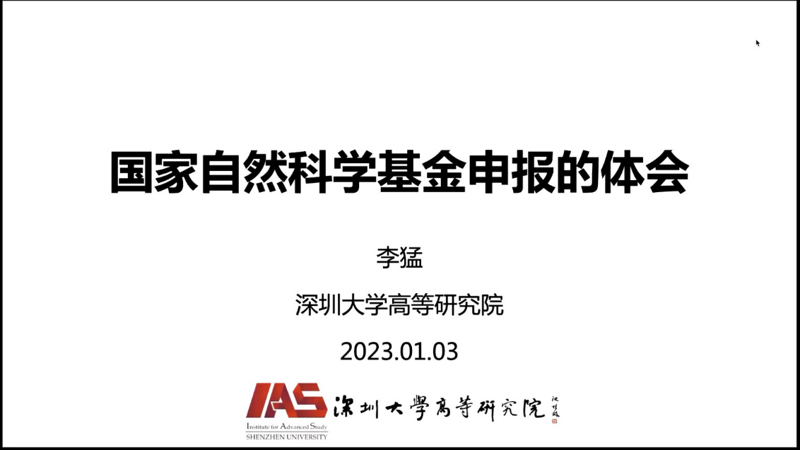 2023年1月3日下午,国家杰出青年基金获得者深圳大学李猛教授为我校师生做了国基申报辅导报告,100余名全校教师在线参加了会议。会议由生命与环境科学学院院长陈洪波主持。