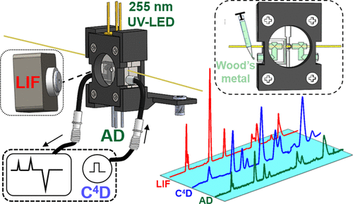 近日,生命与环境科学学院环境科学与工程专业张敏教授课题组在分析化学领域著名期刊《Analytical Chemistry》(中科院1区TOP,IF:8.008)发表题为“Three-in-One Detector by 3D Printing: Simultaneous Contactless Conductivity, Ultraviolet Absorbance, and Laser-Induced Fluorescence Measurements for Capillary Electrophoresis”的研究论文。我院环境科学与工程专业研究生汪迎春、曾梓涵、杨立业为该论文的共同第一作者,张敏教授和我院青年教师曾慧博士为共同通讯作者,桂林电子科技大学为该论文的第一完成单位和唯一通讯单位。