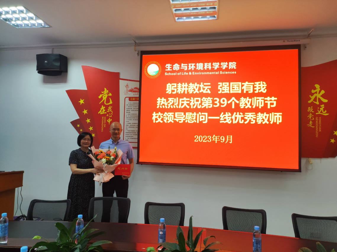 陈贵英副书记向优秀教师代表送上鲜花,并通过他们向学院全体老师致以节日的问候。陈贵英副书记指出,学院的发展离不开教师们的辛勤付出,我们要深刻认识教师在教育强国、科技强国、人才强国建设中肩负的光荣使命与重大责任,要牢固树立“躬耕教坛、强国有我”的志向与抱负,以培养堪当民族复兴大任的新时代新人为己任,争做“四有”好老师和“四个引路人”,努力培养更多德智体美劳全面发展的社会主义建设者和接班人。