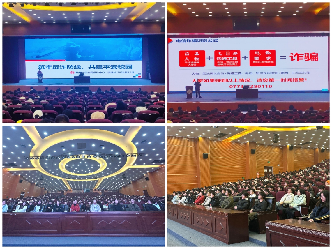 为增强学生识诈防骗意识,进一步提升学生自我防范能力,12月24日,我院邀请桂林市公安局反诈中心民警李锦松在花江校区会议中心大礼堂举办反诈专题讲座。学院党委副书记董惠梅主持讲座,全体辅导员和600余名学生参加讲座。