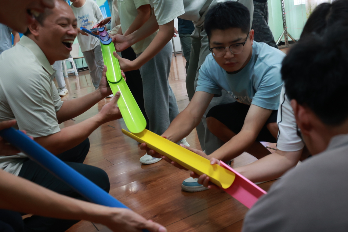 活动现场,师生们积极参与了“同舟共济”、“珠行万里”等特色项目。在“不倒森林”环节,大家围坐共同应对挑战,笑声与掌声此起彼伏;在“速度与激情”中,师生默契配合,一起破解难题,现场气氛热烈而温馨。这些精心设计的活动项目不仅让师生们在科研之余得到充分放松,更在潜移默化中强化了团队协作意识。